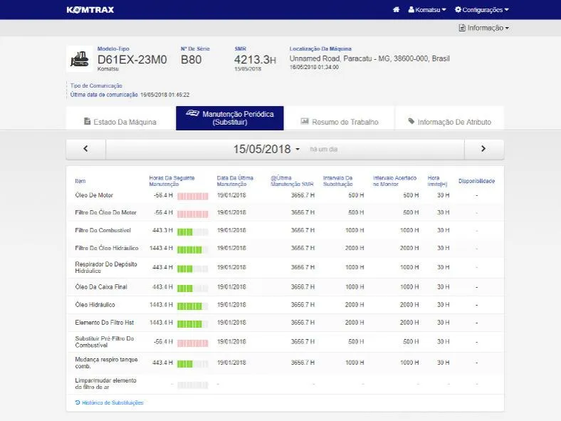 • Verifique quanto tempo falta para a próxima manutenção preventiva e programe a parada com antecedência.